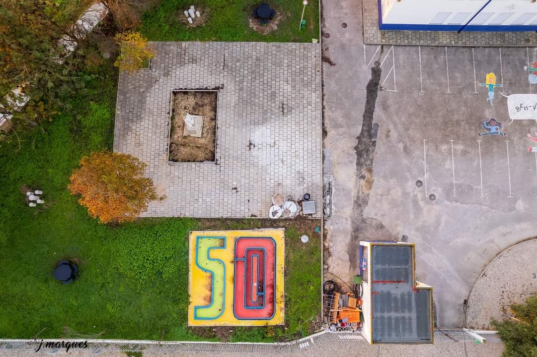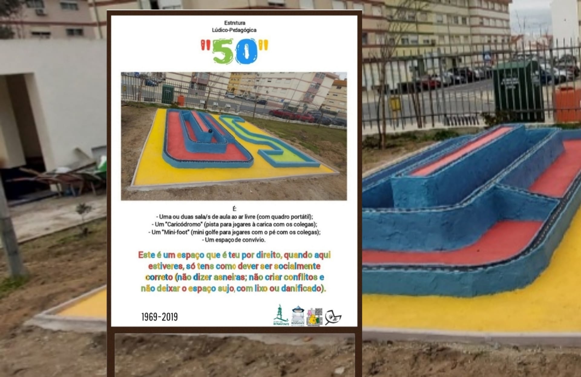 É uma estrutura realizada pela comunidade a partir da escola. Já muita gente, de todas as idades e muitas nacionalidades ali jogaram a respirar escola! Aqui aprende-se com empatia brincando!
