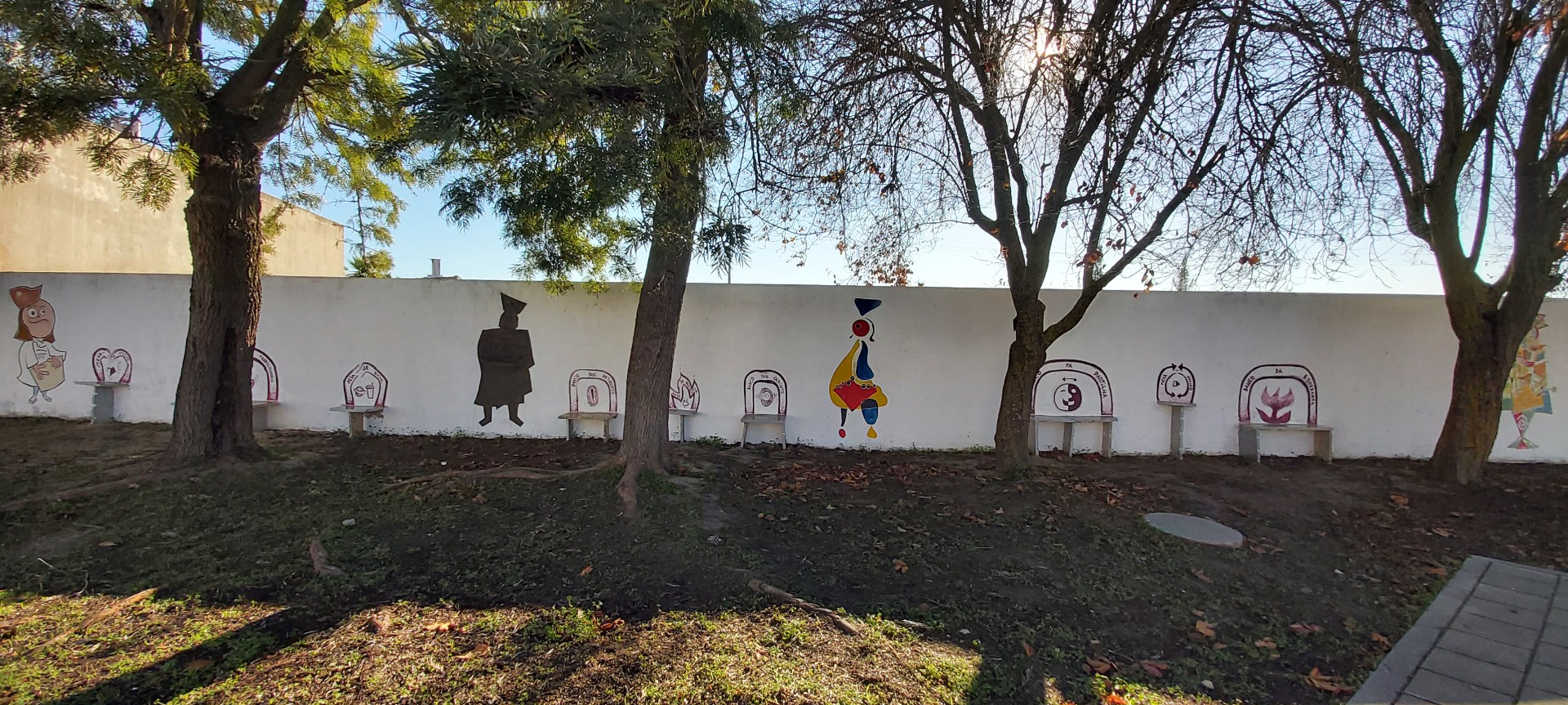 Realizado no chão em grandes dimensões dentro do pátio em frente à entrada. Foi uma obra que resultou da dádiva do tempo aos sábados de todo o tipo de pessoas da comunidade, sempre a começar pelos alunos de todas as idades. Serve de cartão de visita a quem chega, acolhendo com carinho, diversão e inclusão.